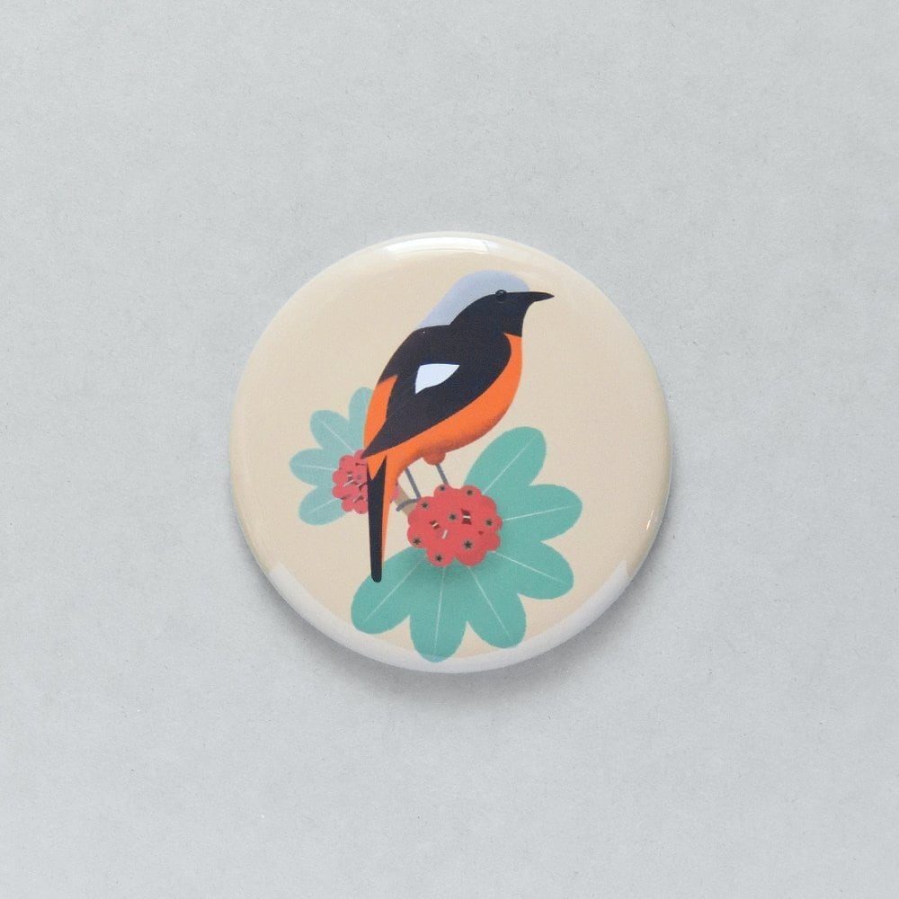 ジョウビタキのオスとトキワサンザシをデザインした缶マグネットです。