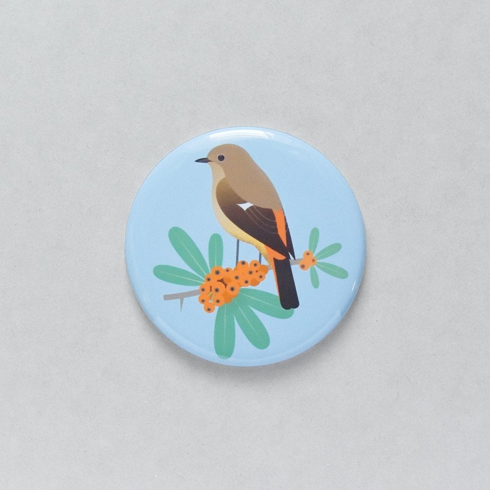 ジョウビタキのメスとタチバナモドキをデザインした缶マグネットです。